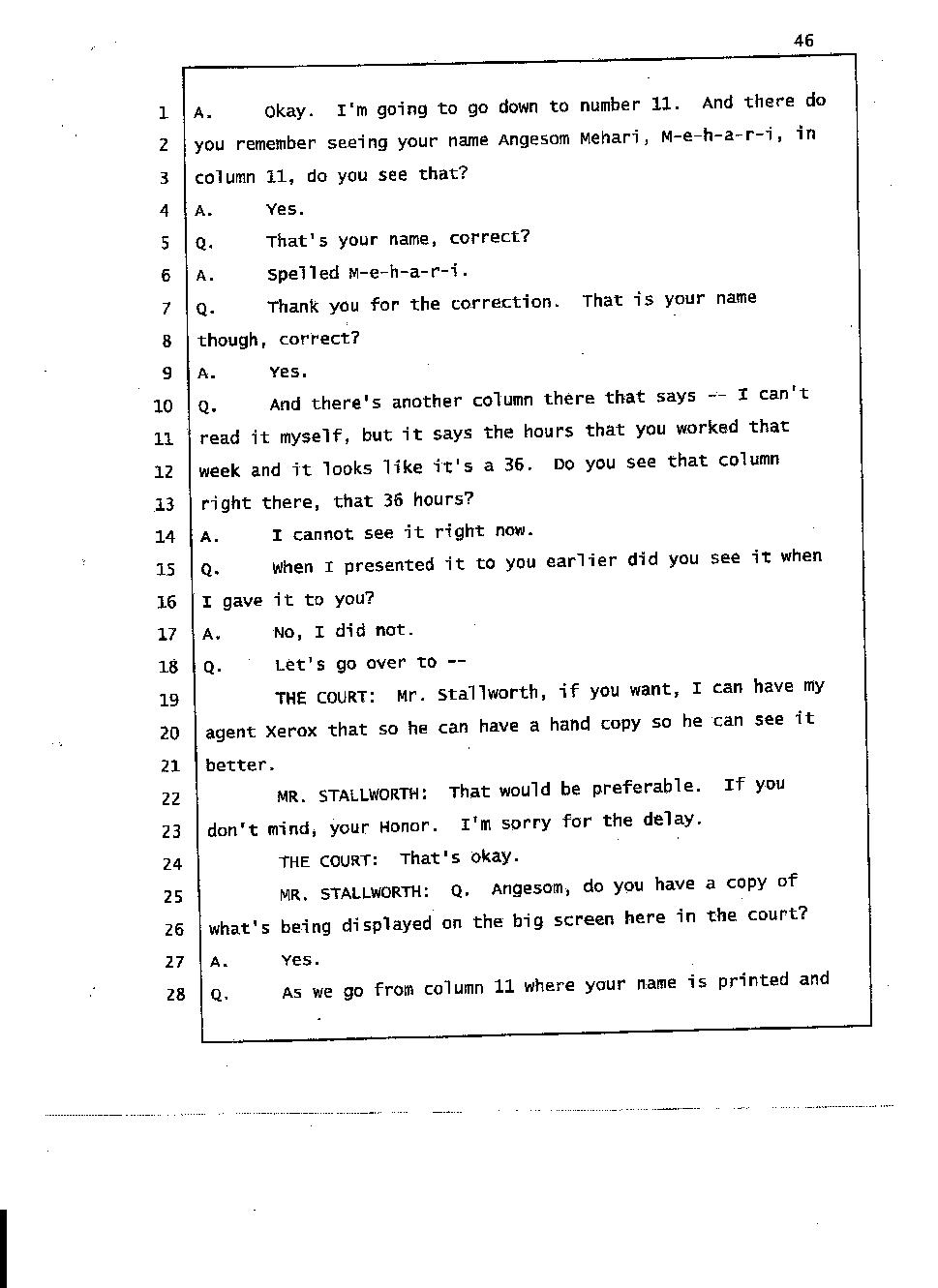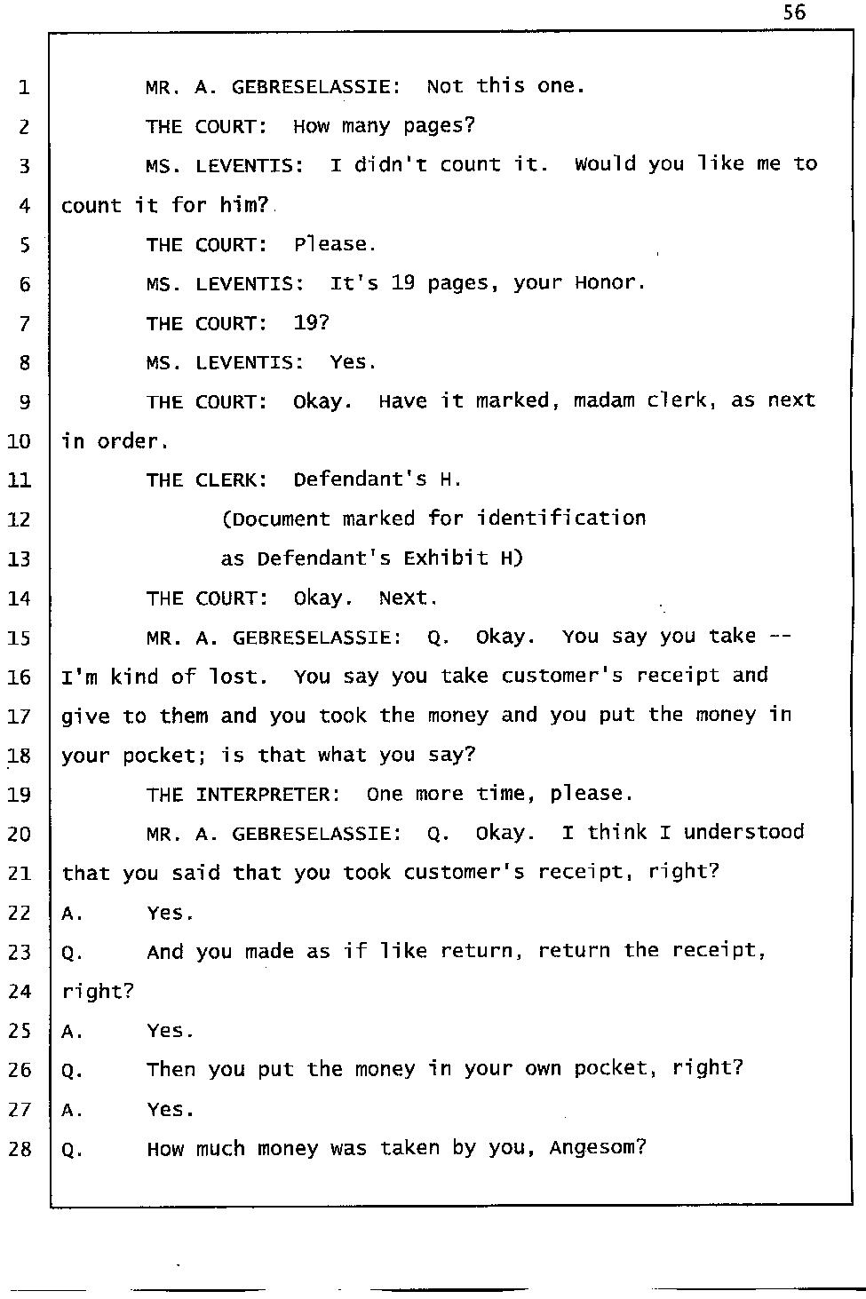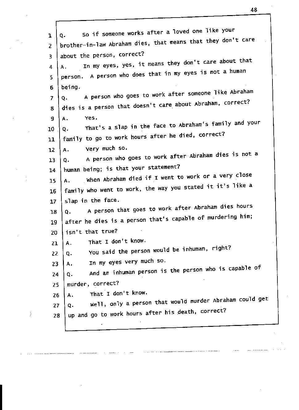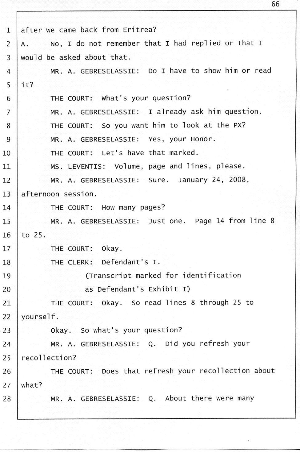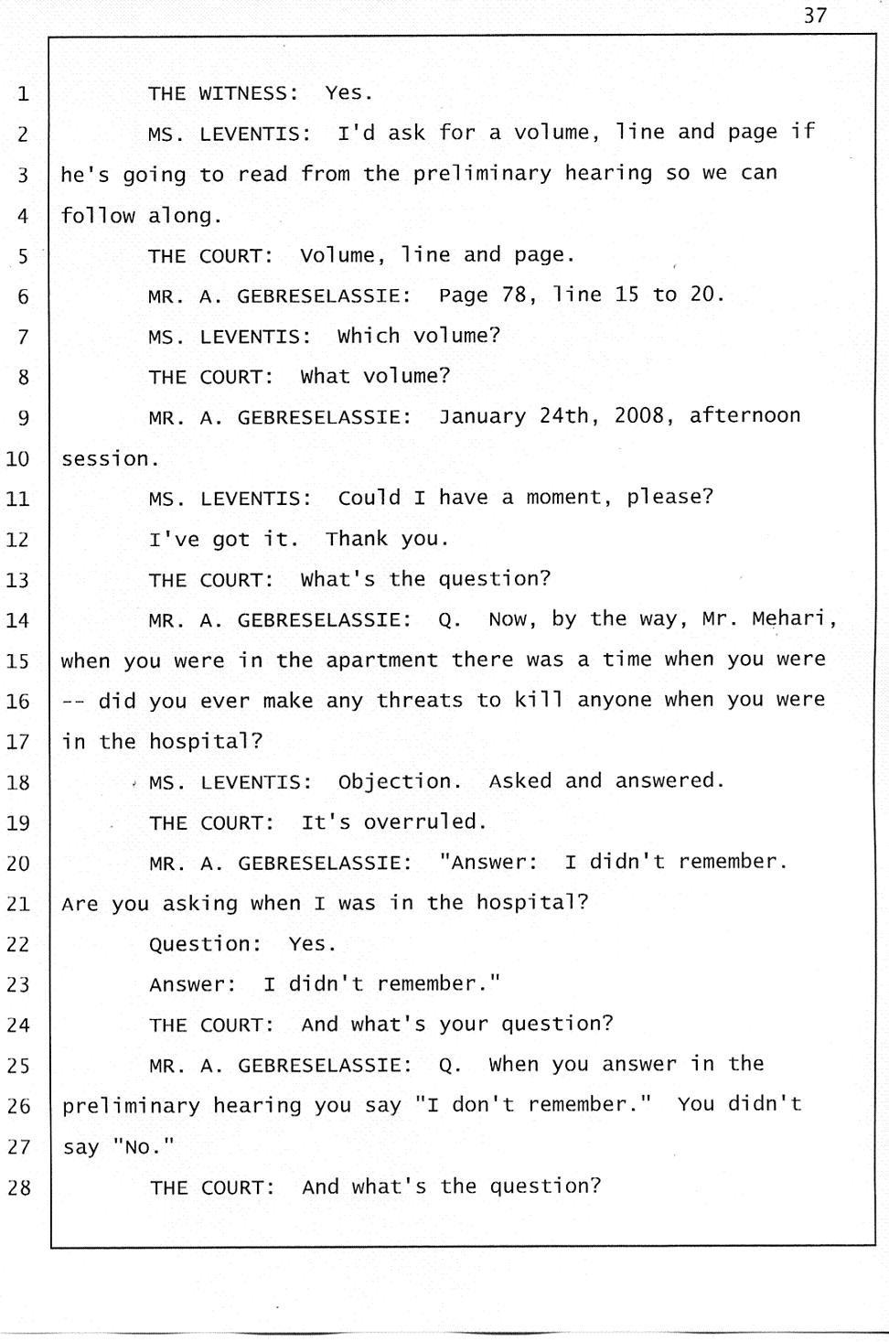 Angesom’s testimony clearly tells you that he was not where he claimed he was at the time of Abraham’s death. Clearly there are numerous holes in the prosecutor’s account about Angesom’s where abouts at the time of Abraham’s death. But why falsify testimony if Angesom has nothing to hide; if he is not guilty of something?